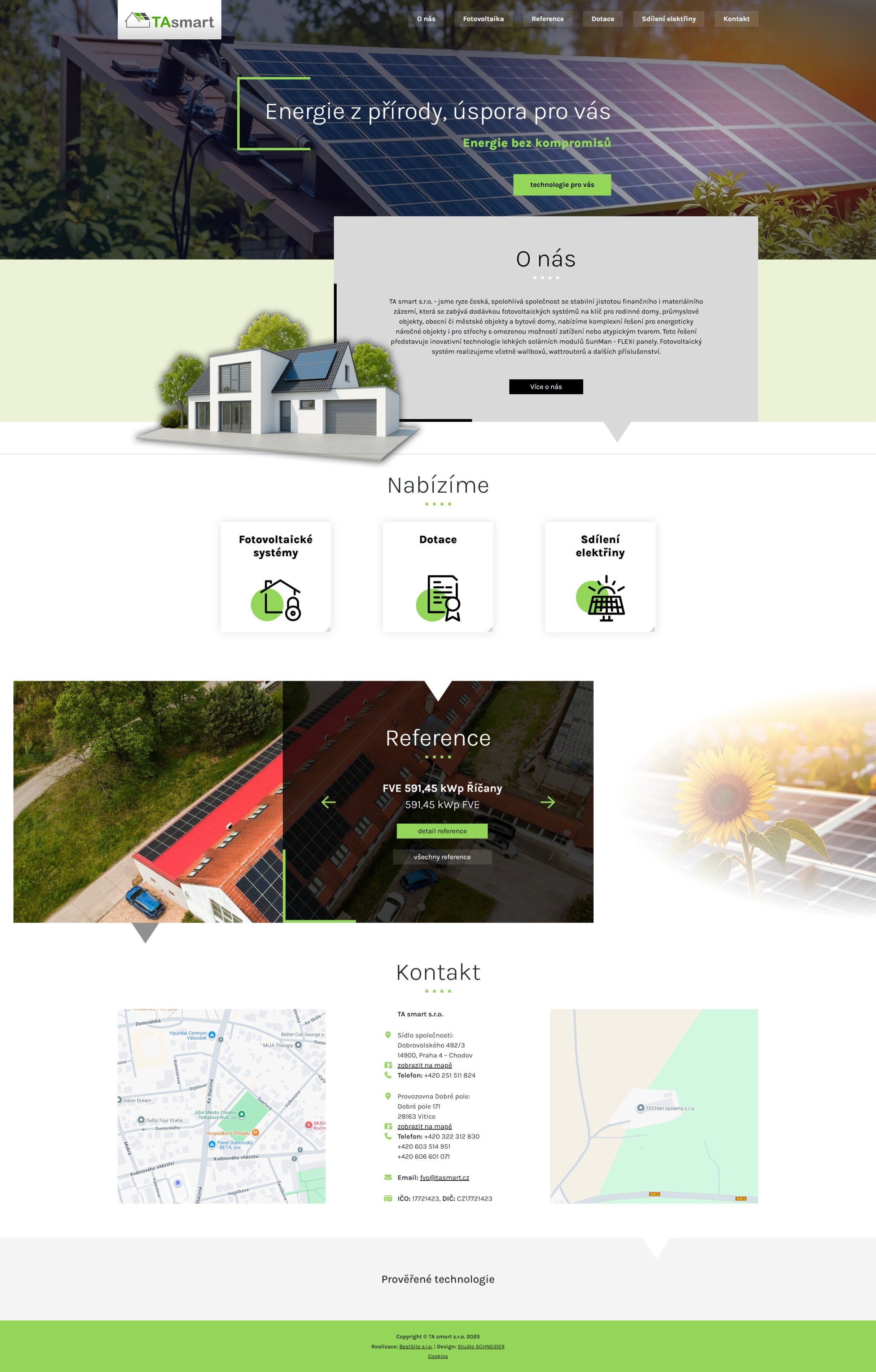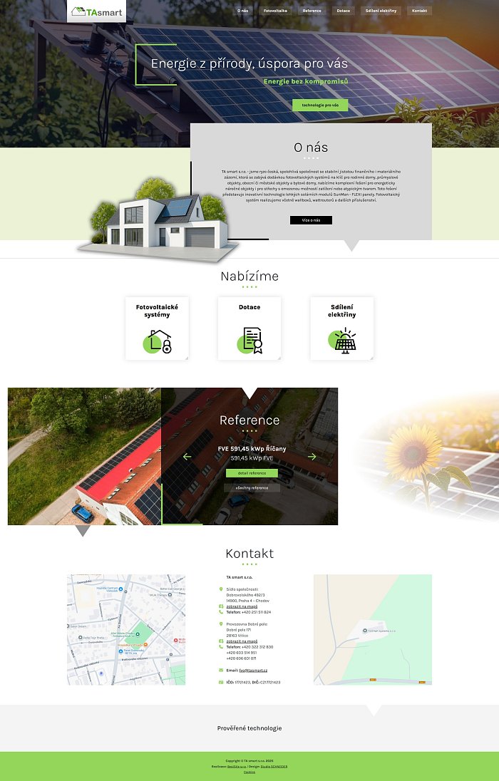 Prezentace české firmy TAsmart, která se zabývá dodávkou fotovoltaických systémů na klíč pro rodinné domy, průmyslové objekty, obecní či městské objekty a bytové domy.